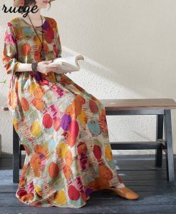 Ruigereal shot 2024 spring new artistic r color travel style round neck flare cotton and linen dress