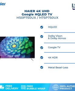 HAIER 50″/75″ 4K UHD Google HQLED TV H50P750UX/H75P750UX | Boundless Vision | Dolby Vison & Dolby Atmos | HQLED | Smart TV with 2 Year Warranty