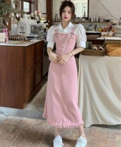 Tassel Denim Brace Dress Women’s Summer Tight Waist Not Split Sling Long Dress Hong Kong Style R chic Women’s Skirt