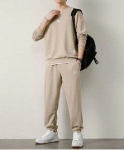 Review Spring and Autumn Waffle Suit Men’s Long-Sleeved T-shirt Casual Trousers One Set of Clothes Trendy Loose Two Pieces Autumn Clothes